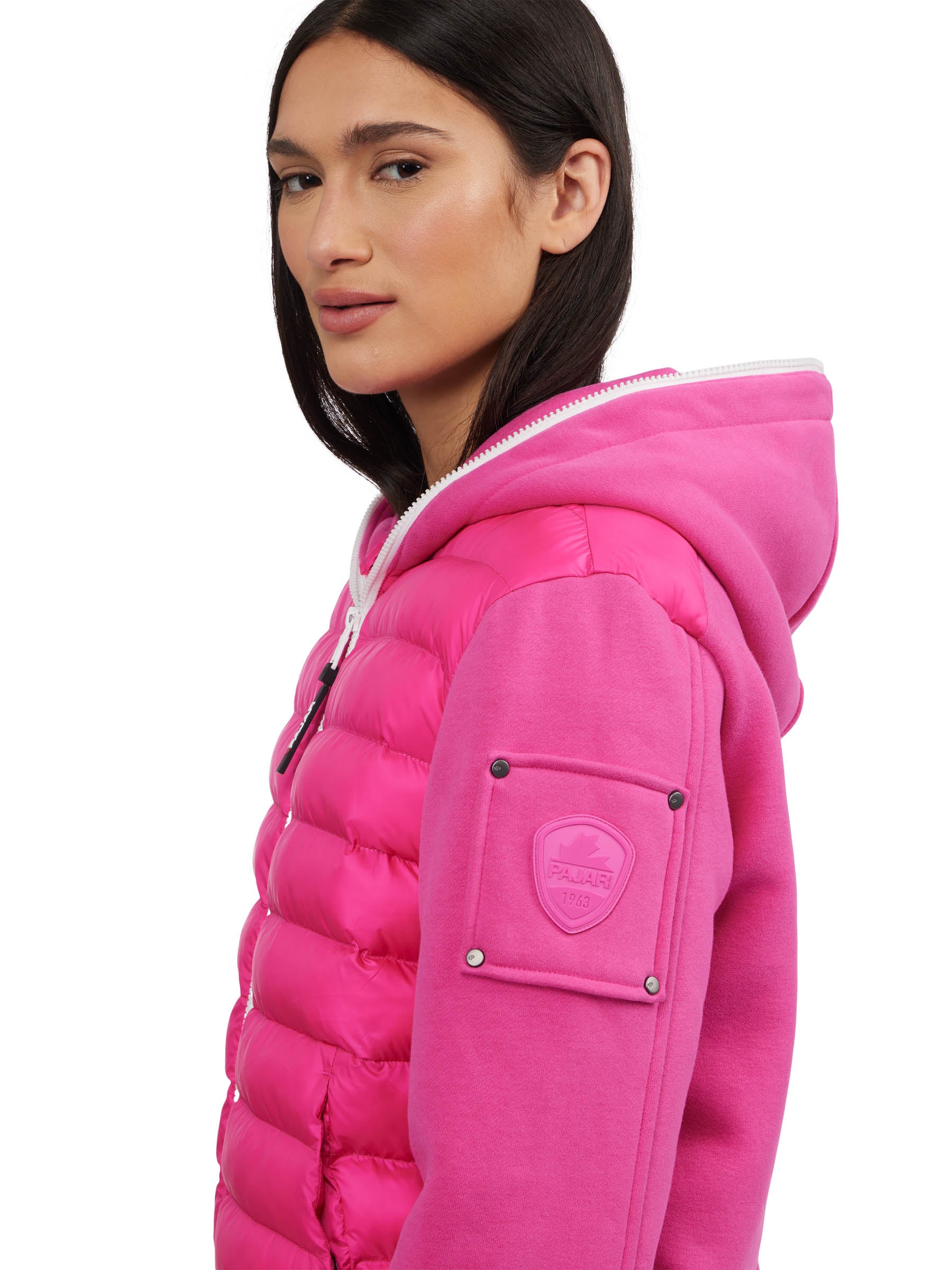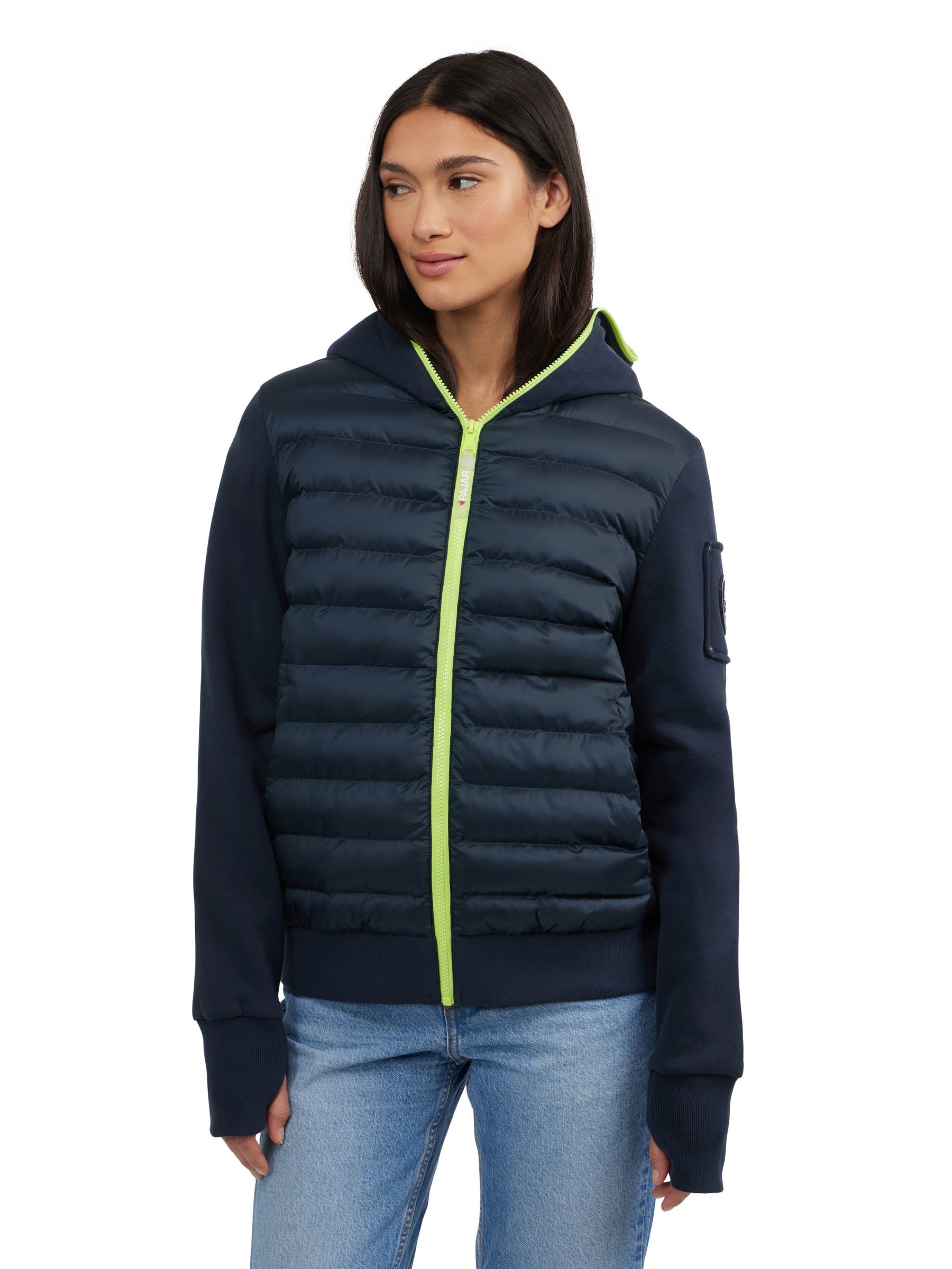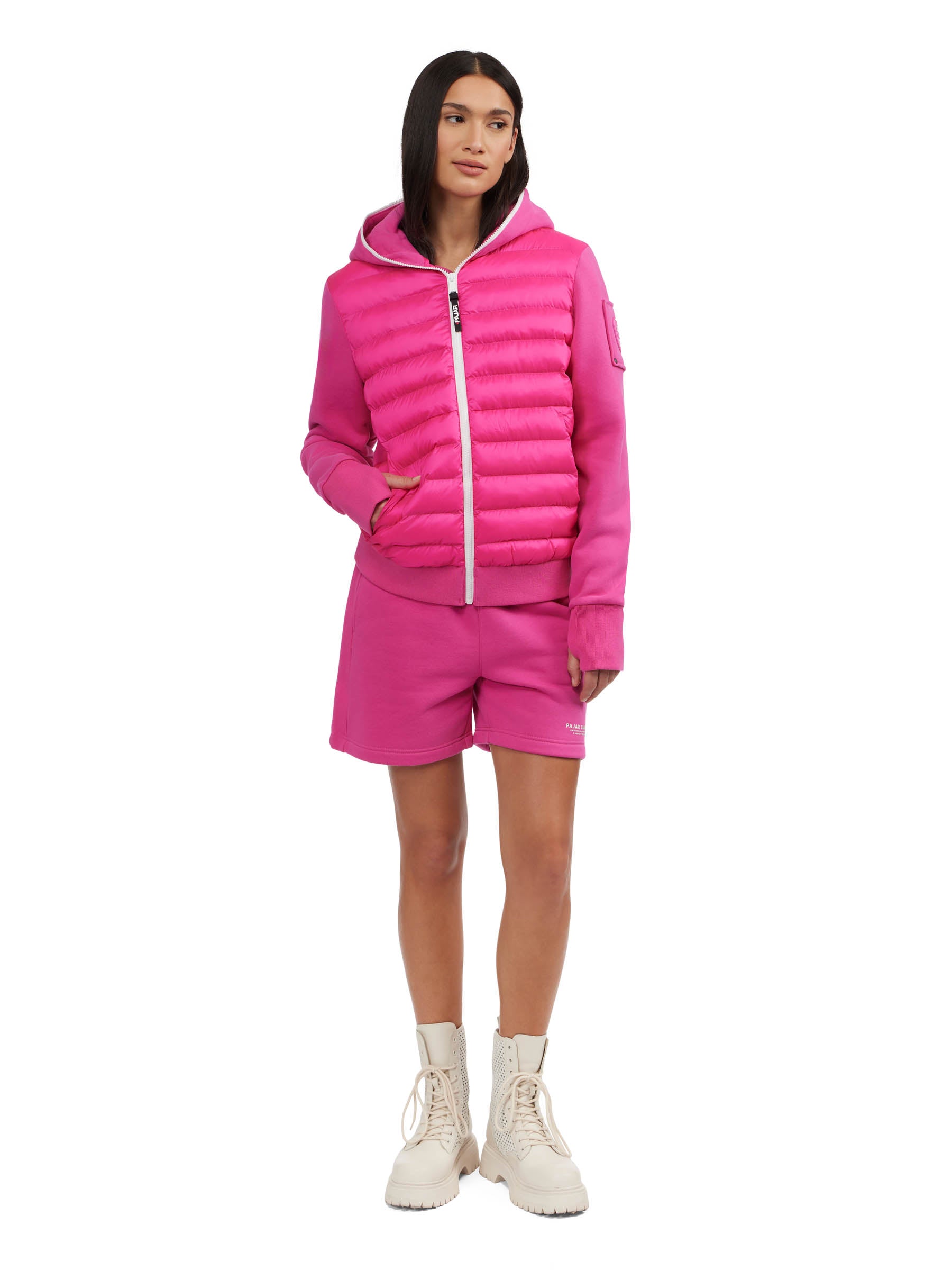 • Cotton blend fleece fabric with natural stretch for ultimate comfort, and a custom wash for the coziest, soft feel. Combined with quilted cire for a lightweight layering piece.