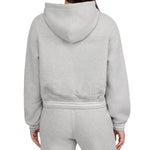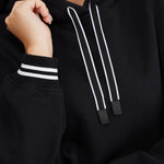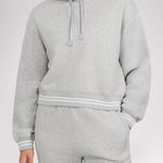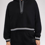 short, not too long, landing at the hip. Striped rib knit cuff, and hem. Striped flat elastic hood drawcord with rubber dipped ends to prevent fraying. Cotton-blend fleece fabric with natural stretch for ultimate comfort. A custom wash for the coziest, soft feel.