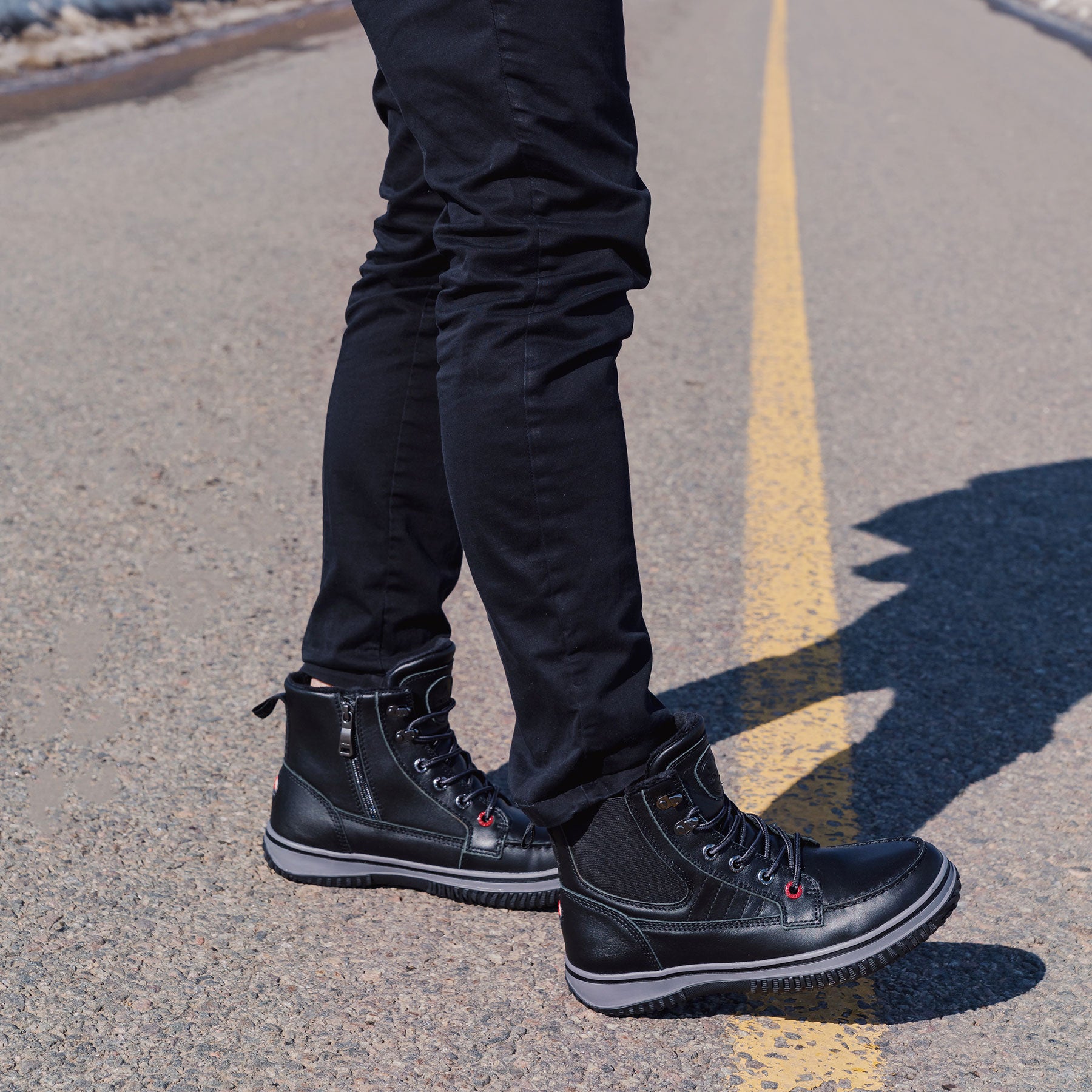 Get A Grip this winter with Pajar's GRAINGER all-in-one moc toe military boot. Expertly crafted in full-grain leather with elastic webbing on the lateral side, and a zipper closure on the inside for easy entry. The Get A Grip Pajar Canada textured rubber sole adds surefooted traction to this rugged style. Rest assured the YKK nylon gusseted zippers will keep the warmth in, and the cold out. The upper is entirely seam-sealed and comfort rated to -30°C, and -22°F, and features our weather proven Pajar-Tex waterproof membrane bootie to keep your feet snug all winter long. Our premium removable comfort molded insole features a cushy mesh lamination that is both breathable and anti-microbial. The waterproof leather upper has been pre-treated to repel water and stains.