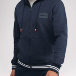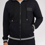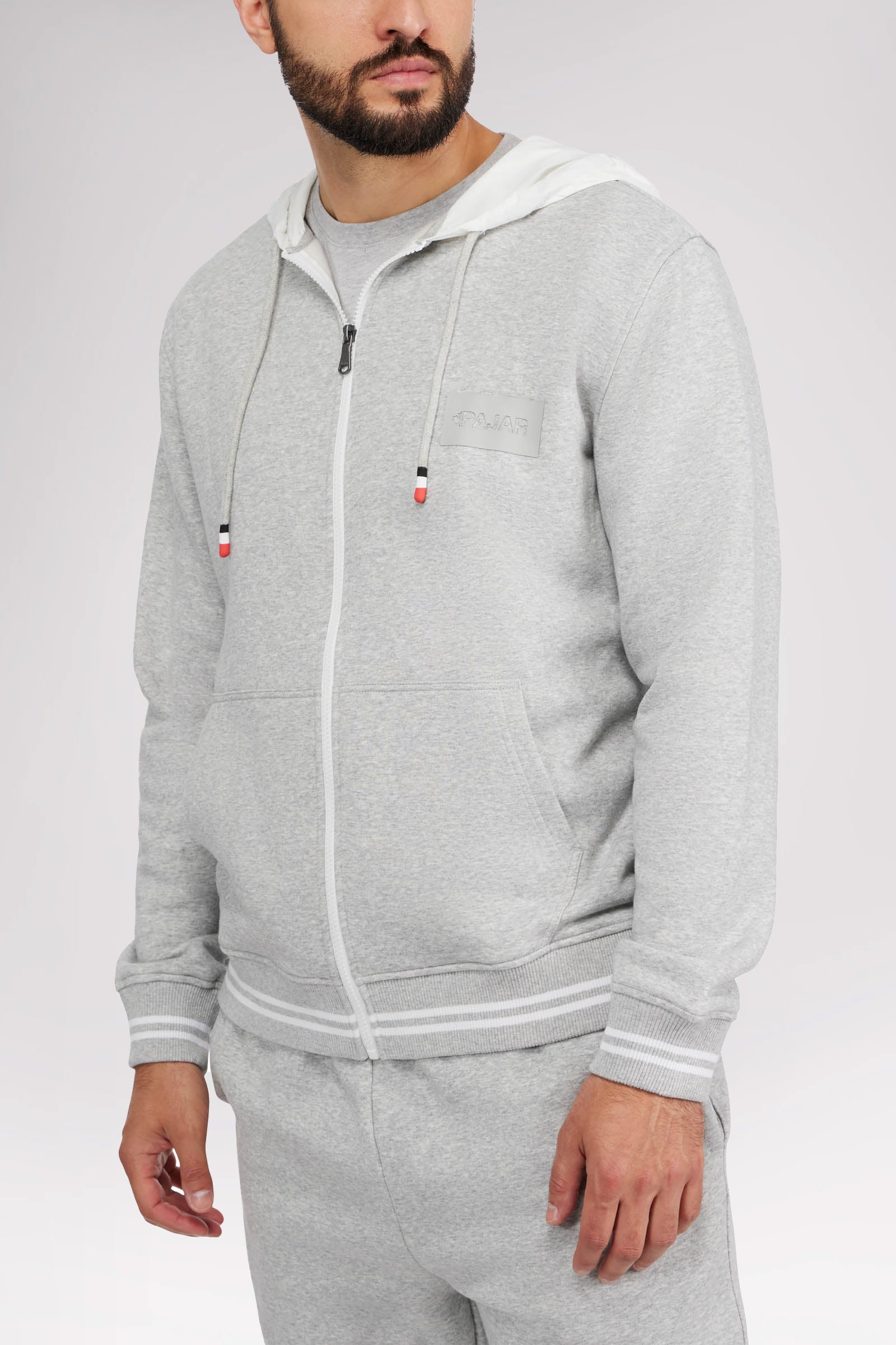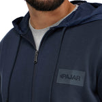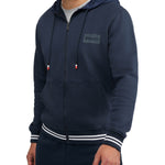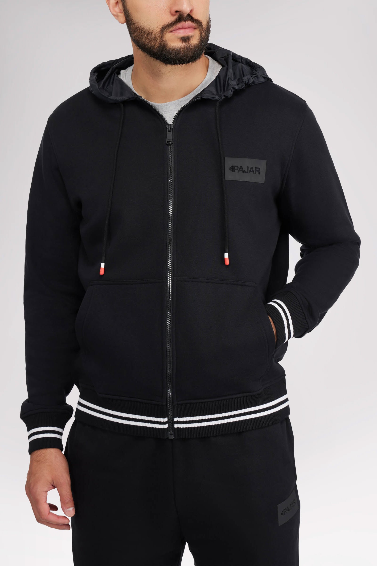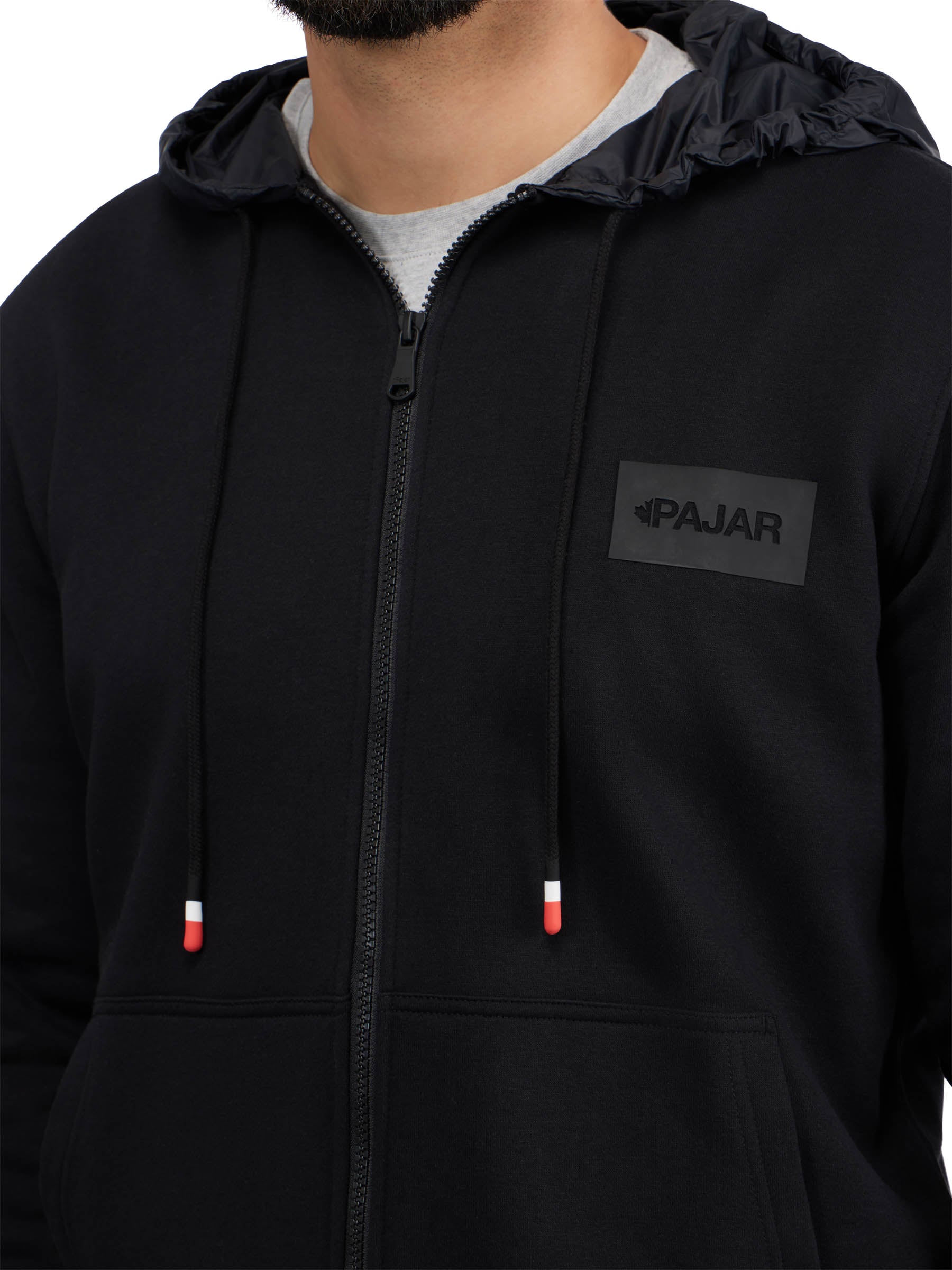 • Men’s mixed-media zip-up hoodie designed to have the perfect