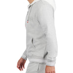 relaxed fit that skims the body. Cotton-blend fleece fabric with natural stretch for ultimate comfort, and a custom wash for the most cozy, soft feel. Combo fabric hood and drawcord with tri- color rubber dipped ends to prevent fraying. Kangaroo pockets, and striped rib knit cuff, and hem.