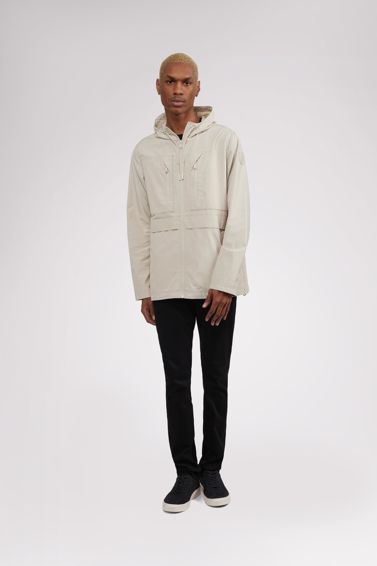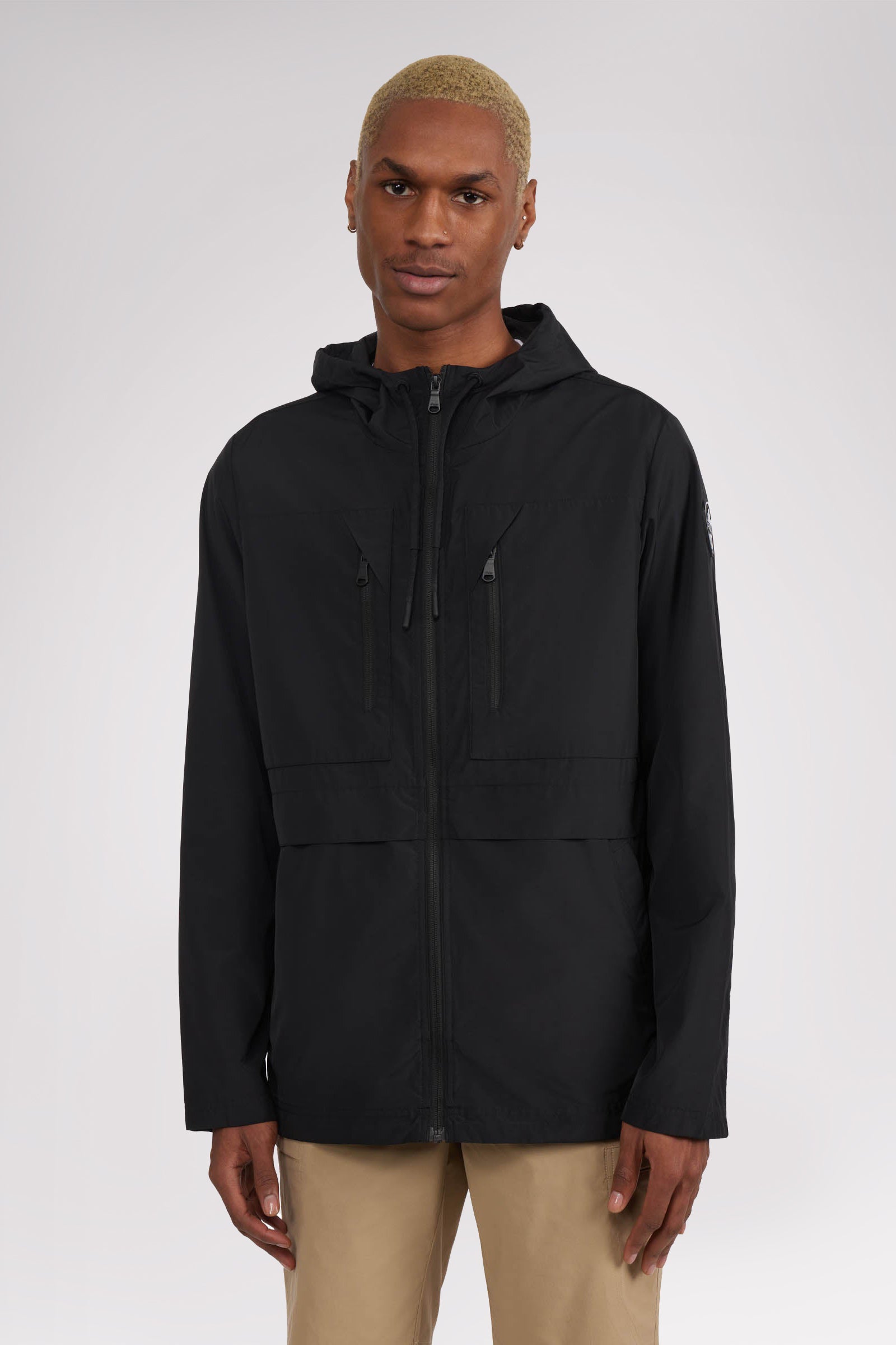 Equipped with exposed zip front closure. Featuring zipper chest pockets for added storage & bottom welt pockets. Interior zipper chest pocket.