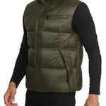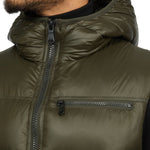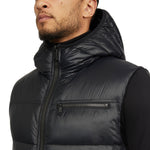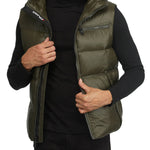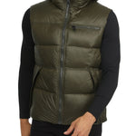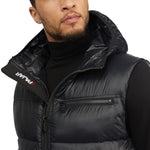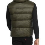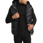 Men’s Channel quilted fixed hood lightweight 3M featherless Thinsulate puffer vest. Exposed zip front closure. Equipped with zipper chest pocket & concealed snap bottom slanted pockets. Contrast color lining.